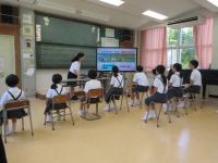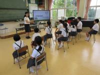 次に、校長先生から昨日の校内水泳記録会の写真と共に振り返ったり、8/6・8/9の原爆の日の平和に関するお話がありました。平和に関するお話は、学級でも行い、平和について考えることができました。