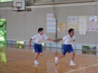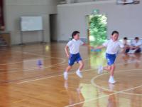 40m走では、バトンを次の人に上手に渡したり、カラーコーンを素早く小回りするなどの工夫を行い挑戦していました。