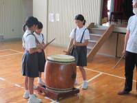 太鼓のばちさばきや体の使い方などのポイントを押さえながら叩くことを学びました。