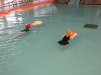 1・2年生は小プールでフラフープやビート板を使い、楽しく学習しました。