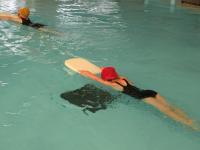 高学年は、けのびや面かぶり、クロール等の基本を学習し、前回よりも長い距離を泳ぐことができました。