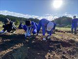 縦割り班の低学年と高学年でペアになって、協力して掘りました。