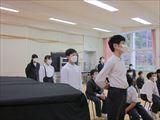 避難を指示する放送がかかると、児童は静かに放送を聞き、