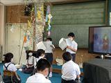 図書・給食委員会は、七夕給食や天の川の説明や、七夕に関するお話の朗読をしました。