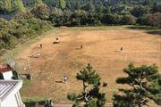 秋晴れの昼休み、子供達は広い運動場で元気に外遊びです。