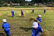 どの児童も意欲的に作業を行い、予定よりも早く稲刈り作業が終わりました。