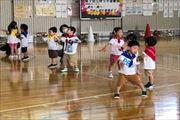 三井小学校の子供達は、運動会のスローガン「走れ!跳べ!力出し切れ最後まで」