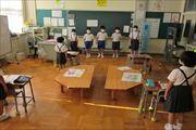 1・2年生が生活科で育てたミニトマトを日頃お世話になっている先生方におすそ分けに来ました。