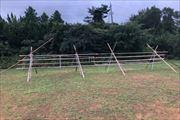 運動場に、稲をかけるはざの準備をして下さいました。