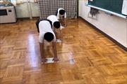 次に、縦割り班に分かれて、18人がからっぽになった6つの教室に分かれ水拭きをしました。