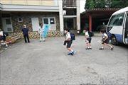 朝、子供達はたくさんの荷物を抱え、18人全員が登校しました。
