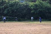 午前6時から1時間半ほどで学校の周辺、運動場、通学路の土手等、保護者の方々、地域の方々の協力を得て、きれいに除草していただきました。スッキリ、サッパリしました。