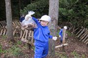 子供達は、縦割り班毎に低学年と高学年がペアになり協力して、椎茸の原木に種ゴマを木づちで打ち込んでいきました。