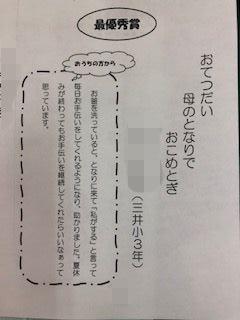 輪島市の「親子の約束」標語コンクールで本校3年生児童が低学年の部で最優秀賞をいただきました。