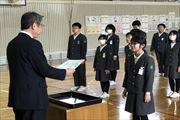 宮坂輪島市教育長さんから最優秀賞を受賞した児童に直接表彰状をいただきました。