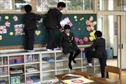 1〜5年生は、残念ながら卒業式には参加できないので、おめでとうの気持ちを込めて6年生の教室の飾り付けを行いました。
