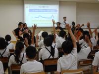 7月9日11時、校内放送から「シェイクアウトいしかわ」の訓練開始の合図が流れると、一斉に机の下に隠れる子どもたち。一言もしゃべらず、頭をかかえてじっとして動かずにいました。訓練終了の放送が流れると、ほっとした様子で机から顔を出し、笑顔で話し始めるすがたに、緊張していたことが伝わってきて胸が詰まる思いでした。生きていればこそ・・・だから、これからもだいじょうぶ。