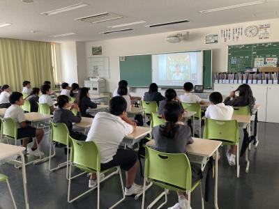 4月、輪島高校から輪島中学校へ学習の場を移し、誰もが多少の不安を抱えながら新学期を迎えたことと思います。本日、1学期を終えるにあたり、オンラインで終業式を行いました。子どもたちは、画面に映る校長先生方にきちんと礼をし、元気に返事をし、まっすぐ手を挙げて、いい姿勢で真剣に終業式に臨んでいました。最後の最後まで本当によく頑張った1学期でした。