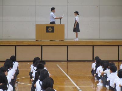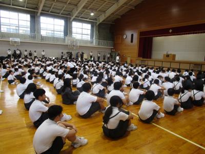 体育館で始業式が行われました。久しぶりに登校した輪島っ子が全員そろって、集合する式の様子に、喜びを感じました。スポーツで活躍した輪島っ子の表彰式も行われました。