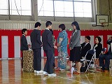 男子3名の卒業生たちは凛々しい態度で卒業証書を受け取り,