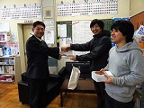 まるやま組の坂本さんと松野さんから校長先生へ贈呈されました。