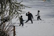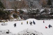 8日にも思いっきり遊んで足跡だらけだった運動場は、今日も新雪でふわふわです。