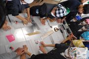③輪島塗の先生の指導で漆で装飾する。