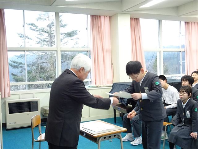 全員が吟じた後、堀下先生から一人一人に「許証」が手渡されました。