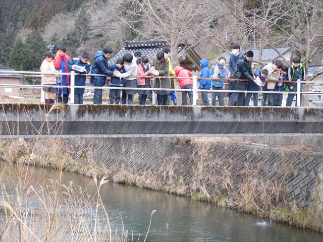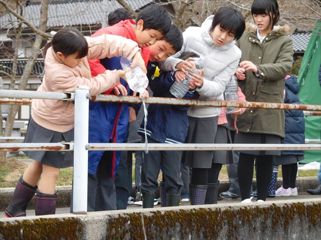 学校近くの河原田川に全校児童で出かけ放流してきました。