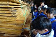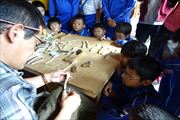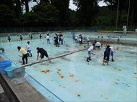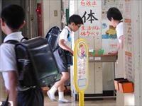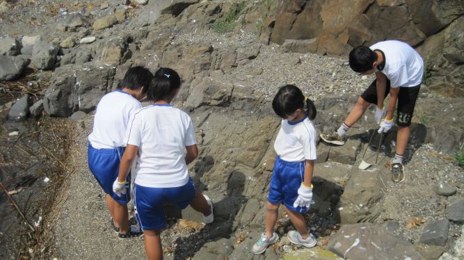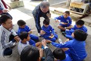 刈った稲は運動場にはざ掛けしました。去年より多いような気がします。