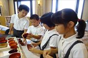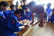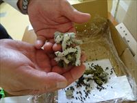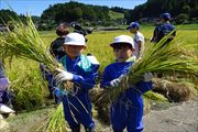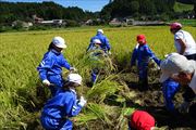地域の方々、航空高校生と協力して、5アールの稲を約1時間で刈りました。