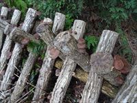 菌を植えたホダ木は互い違いに積み重ねておきます。