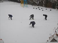 早速雪を丸め始めます。
