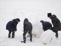 雪だるまが 雪タワーに