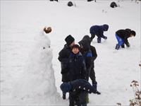 あっという間に雪だるまの完成!