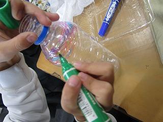 透明な容器に色をぬったり、組み合わせたりして、とても楽しそうに作っていました。