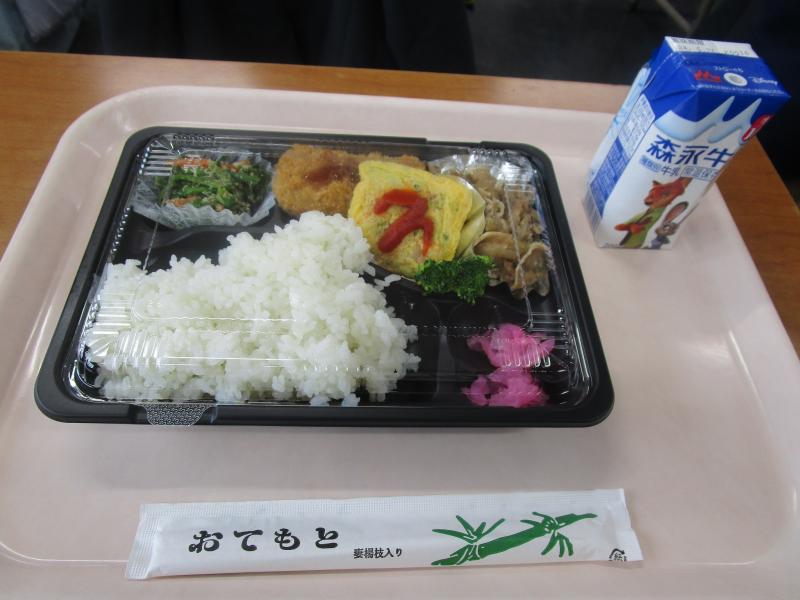 輪島高校で授業が再開した2月中旬から和倉炊飯のみなさまに毎日お弁当を届けていただきました。輪島中学校の厨房の整備が終わり、明日から給食が提供されることとなり、本日が最後のお弁当となりました。
