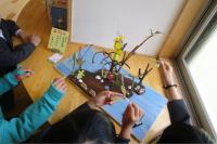 繊細なバランスで木々の先端に止まっている竹とんぼを子どもたちは大切に大切に手に取って、その不思議さに夢中になっていました。
