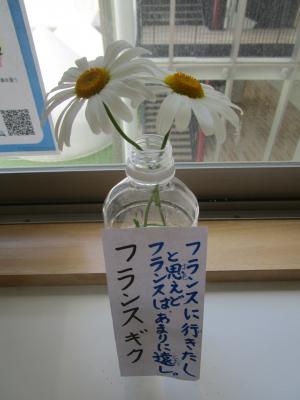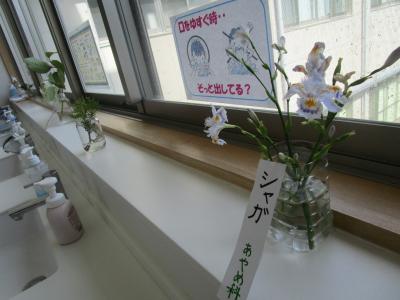 輪島中学校のいたるところに、道端でひっそりと咲いている可憐な花たちが飾られています。どなたが飾ってくださっているのか分かりませんが、その思いやりの心を大変ありがたく思います。