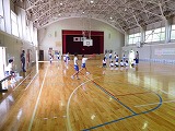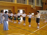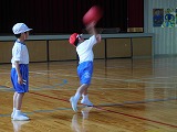 学級ごとに 両サイドに分かれて ドッチボールを投げ合います。