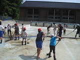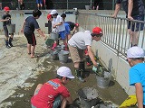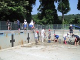 大きなプールを、3~6年生と保護者の皆様と職員が協力してきれいにしました。