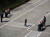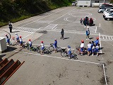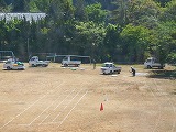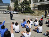 校庭に引いた道路図上で、恒例の交通安全教室が行われました。