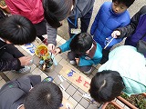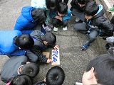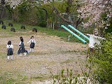 1年生は、桜の花びらキャッチゲームに興じました。