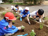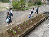今朝、地域の方から頂いた花の苗を1・2年生で移植しました。