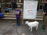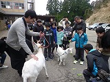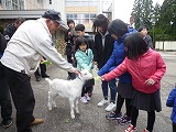 子どもたちは初めて見るヤギに少しビビッているようでしたが、だんだん慣れてくると一緒に走っ回ったり、えさをあげたりと楽しくふれ合うことができました。