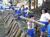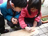 2017年4月13日 12時53分椎茸の植菌作業を全校児童で行いました。