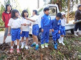 写真4枚目 最後は収穫です。下級生から順番です。一人8~9本をもぎ取って、袋に詰めました。お家の人に料理してもらってね。
