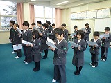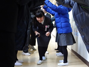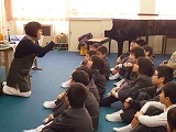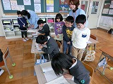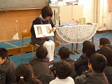 2017年3月22日 18時23分 5限目に金沢の「はるかぜ文庫」を主宰している中橋範子さんをお迎えし、読み聞かせをしてもらいました。始めに中橋さんの小さな袋から出てきたのは、手作りの「へび いちのすけ」君。工藤直子さんの『詩集 のはらうた』から「あいさつ」を紹介してもらいました。可愛いへびに子どもたちは大喜び。つかみはOK!次に、この季節にぴったりの長 新太さんの『ふゆめがっしょうだん』からたくさんの木の芽を紹介してもらいました。そして、山の動物たちが今のような形や色になった謂われも入った絵本『天の火をぬすんだうさぎ』。ちょっと気分転換にわらべ歌『かたどん』でストレッチ。最後は部屋を少し暗くしてロウソクに火を灯してのお話『エパミナンダス』。どの子も興味津々に聞いていました。お話が終わると3月生まれの3人が代表で火を吹き消しました。