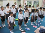 今日5限目に、2学期初めての詩吟教室がありました。本校の児童は、保育所から詩吟を習い始め、小学校でも継続して取り組んでいます。大変に難しい言葉ですが、低学年でもそれを見て大きな声で吟じることができます。詩吟は「富士山」と「弘道館にて梅花を賞す」を練習しています。今日の一枚に「富士山」の歌詞を載せましたので、是非ご覧下さい。
