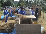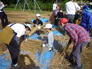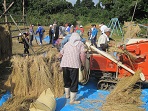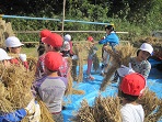 火曜日の5限目に全校児童で脱穀作業とわらを縛る作業をしました。そのための稲を運ぶ作業は低学年がしました。特に1年生は初めての作業だったので、喜んで楽しみながら稲を運んでいました。中学年はわらを縛る作業を中心に、高学年は足踏み脱穀に取り組みました。地域の方も7人参加されて、各作業について丁寧に教えて下さり、子どもたちも納得しながら汗を流していました。